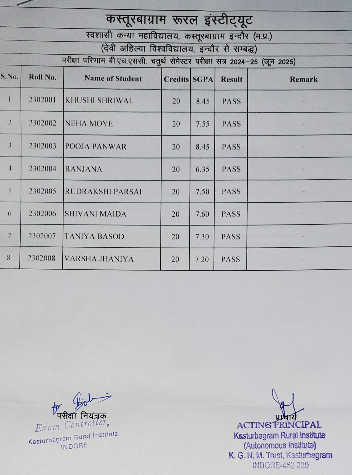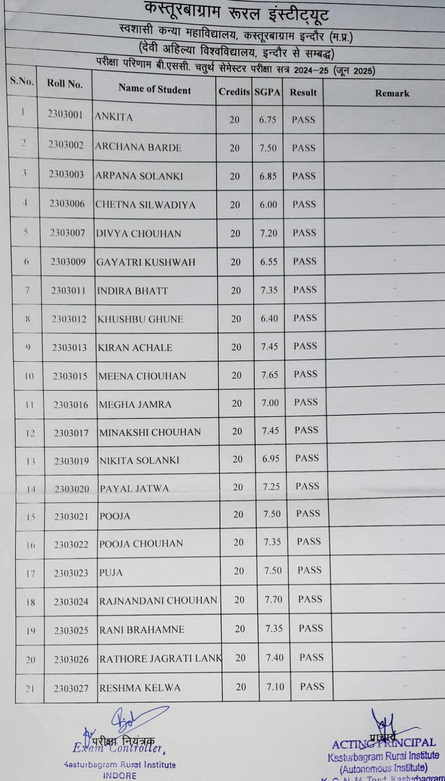 II and IV Semester Result 2024-2025 (June 2025)